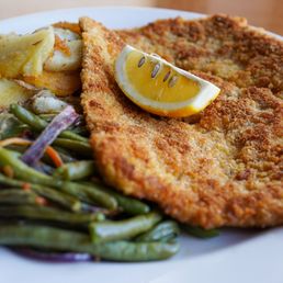 Love the food here, the Jagerschnitzle is amazing! Love the beer and the people. Wish they would serve dinner outside though!